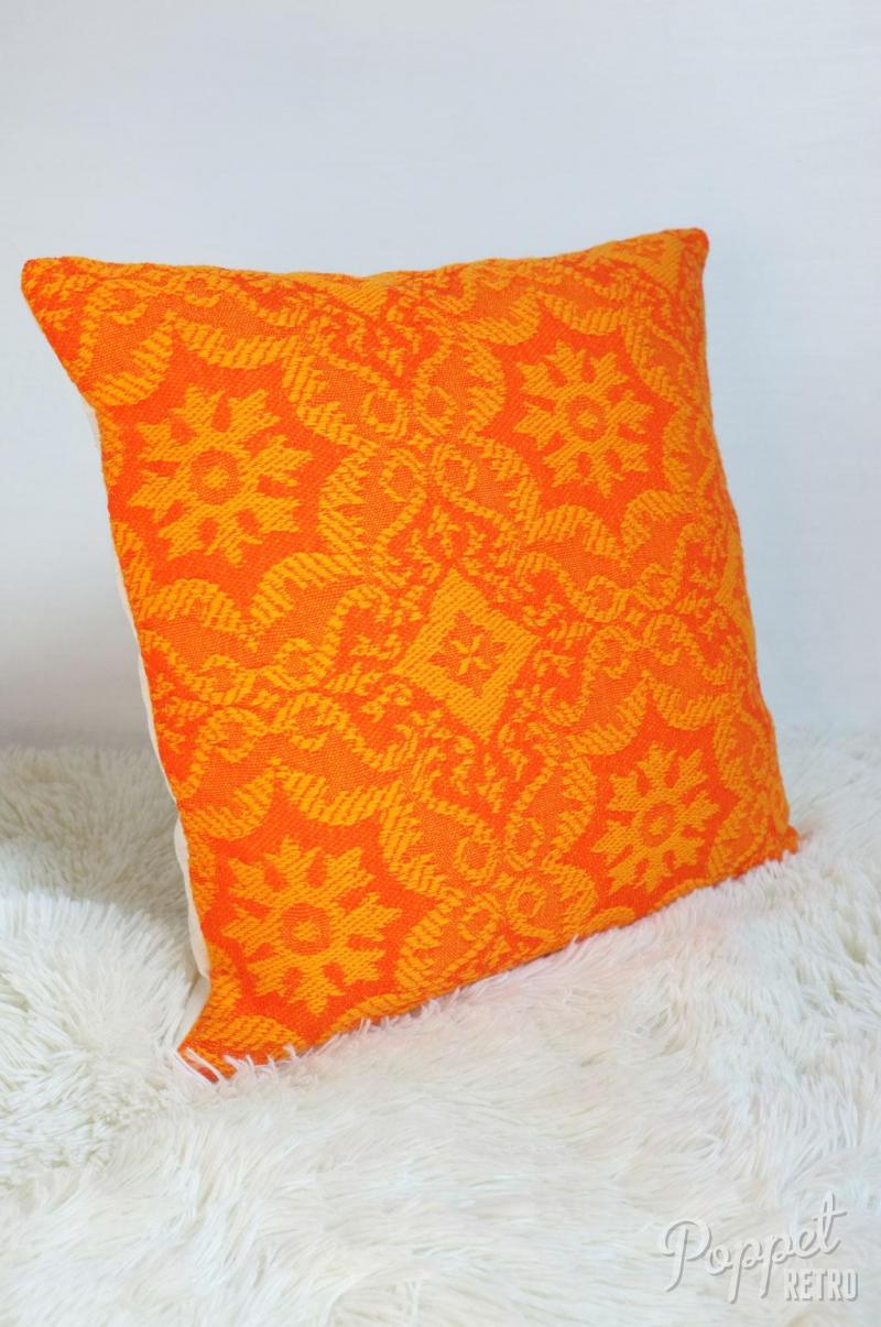This cushion cover measures 16" x 16" and is covered with original 60s bright orange fabric.