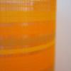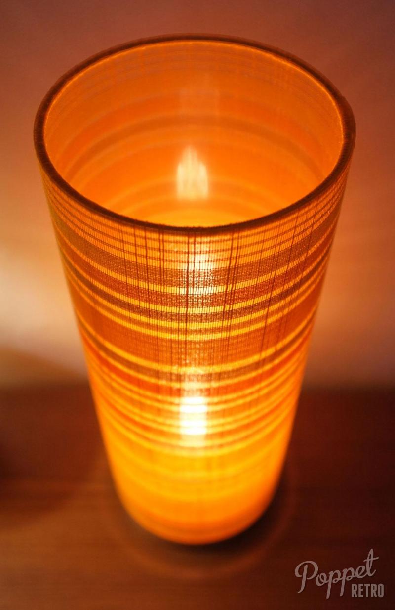 This lamp is so gorgeous! Lovely, sheer midcentury fabric on a clear backing plastic to create a gorgeous, orange, glowy lamp! Lamp base is hand turned sapele.