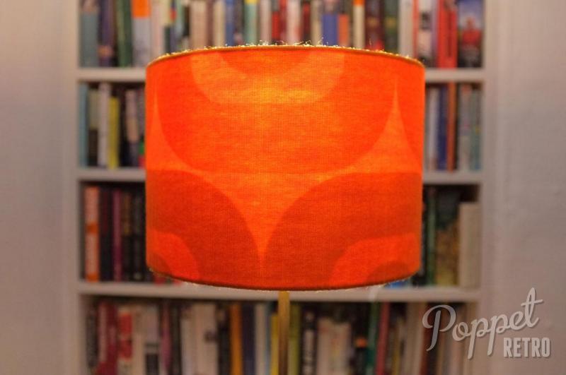 One of my best sellers, this super orange fabic lampshade is available with a variety of lining paper, some new and retro inspired, some original midcentury wallpaper.