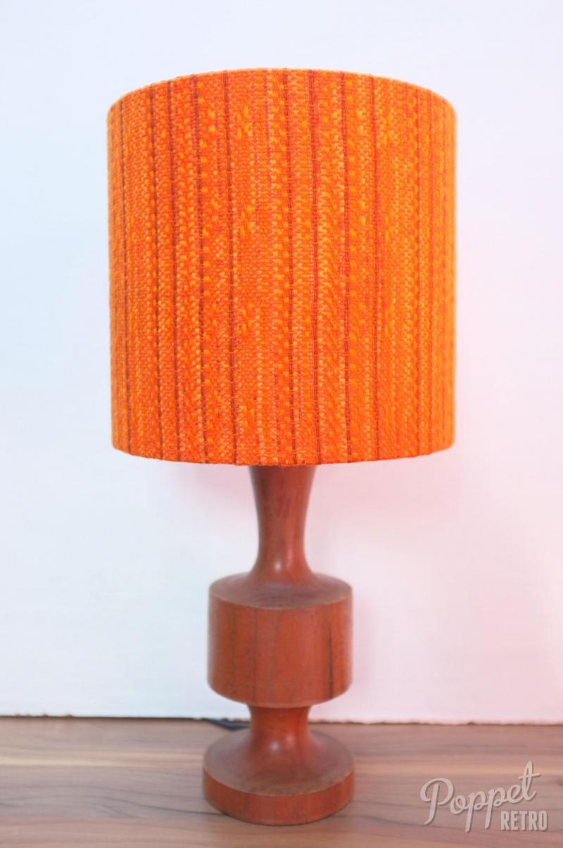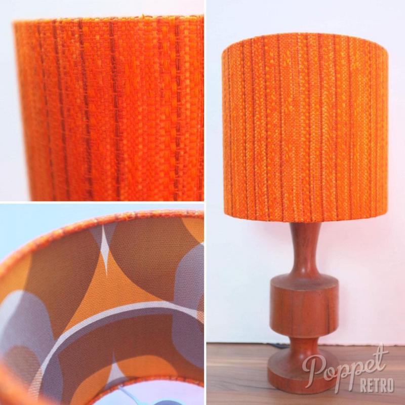 This little lampshade measures 20cm in diameter and 19cm tall. Covered with gorgeous mid-century bright orange fabric and lined with new, retro inspired brown and orange geometric paper.