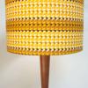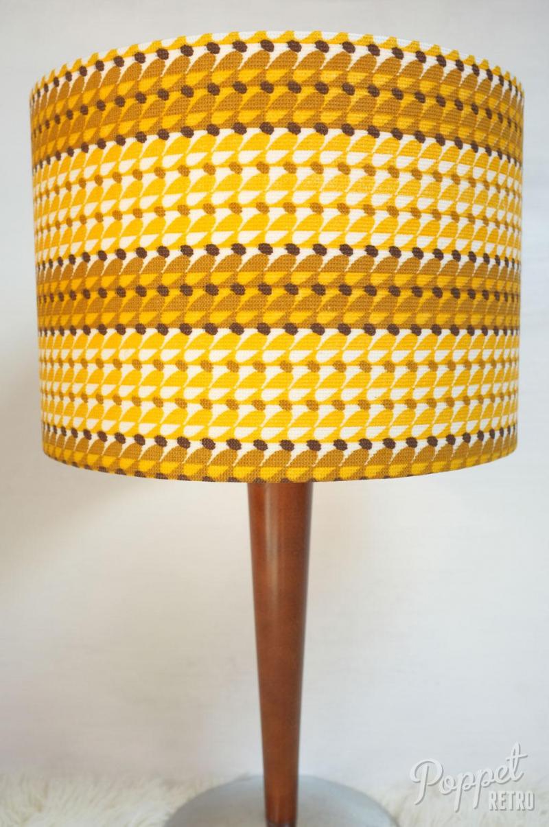 This handmade lampshade is covered with original midcentury mustard fabric and measures 30cm in diameter, 21cm tall.