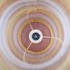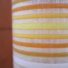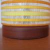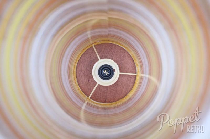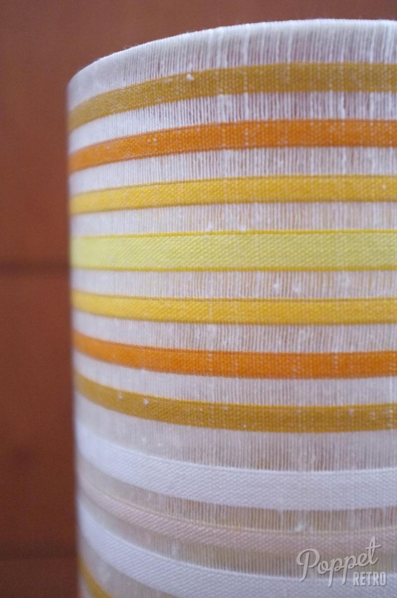 This lampshade is made of gorgeous sheer cream, yellow, brown and orange fabric, on clear backing. The metal rings are painted beige so they don't stand out. The lamp base is handturned in solid sapele wood.