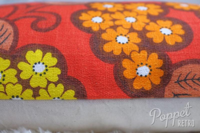 This rectangular cushion cover is the perfect size for a vintage caravan or campervan! It measures 18 x 12" and is covered in original 70s red and yellow flowery fabric.
