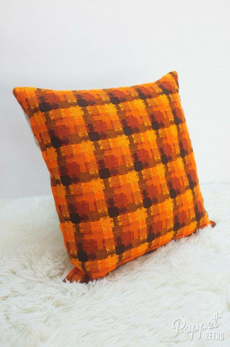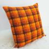 Super Orange Tartan Retro Fabric Cushion Cover 60s/70s